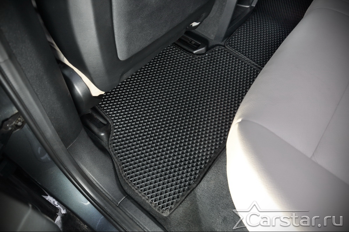 Толщина ковриков EVA составляет 10-12 мм. Глубина ячеек 7-8 мм. Такая толщина ковриков позволяет им служить довольно долго, не протираясь до 3 лет. А благодаря такой глубине ячеек коврик EVA площадью 1 кв.м. способен захватить около 3,5 л жидкости, сохраняя в чистоте вашу обувь и обивку салона.