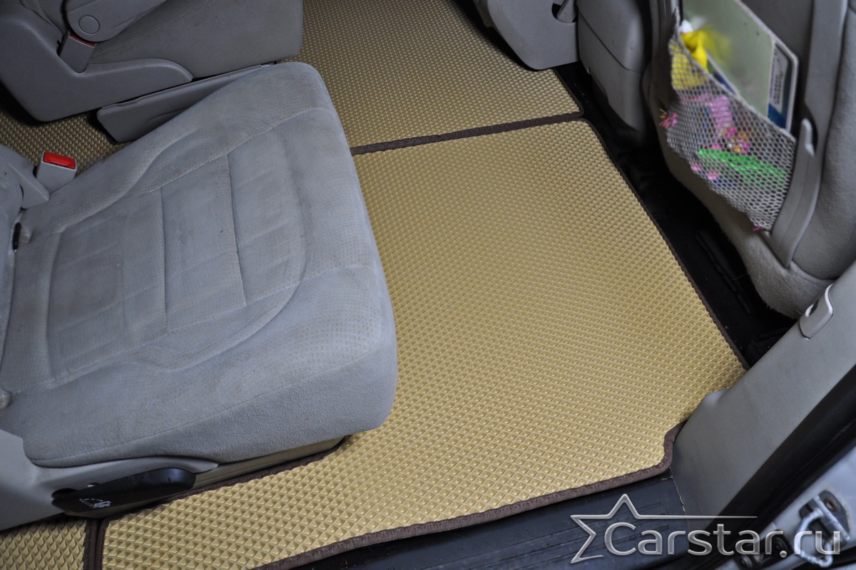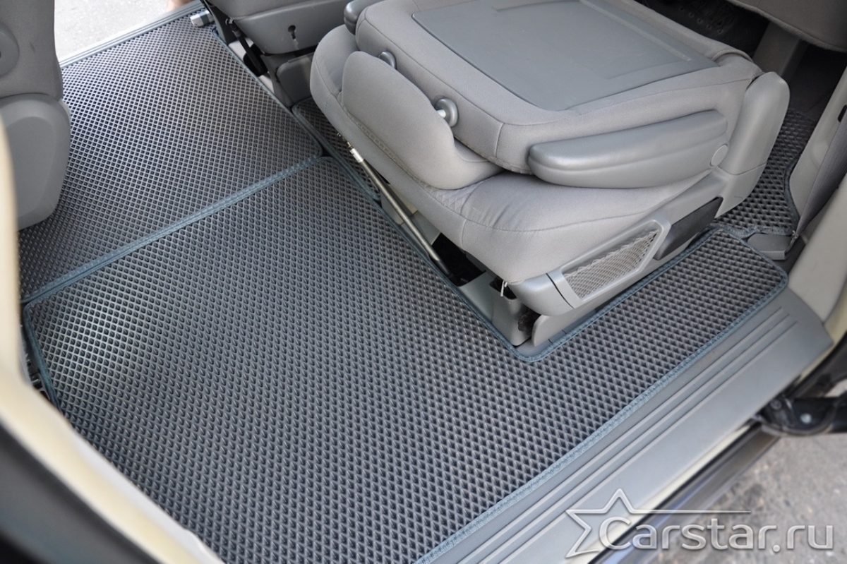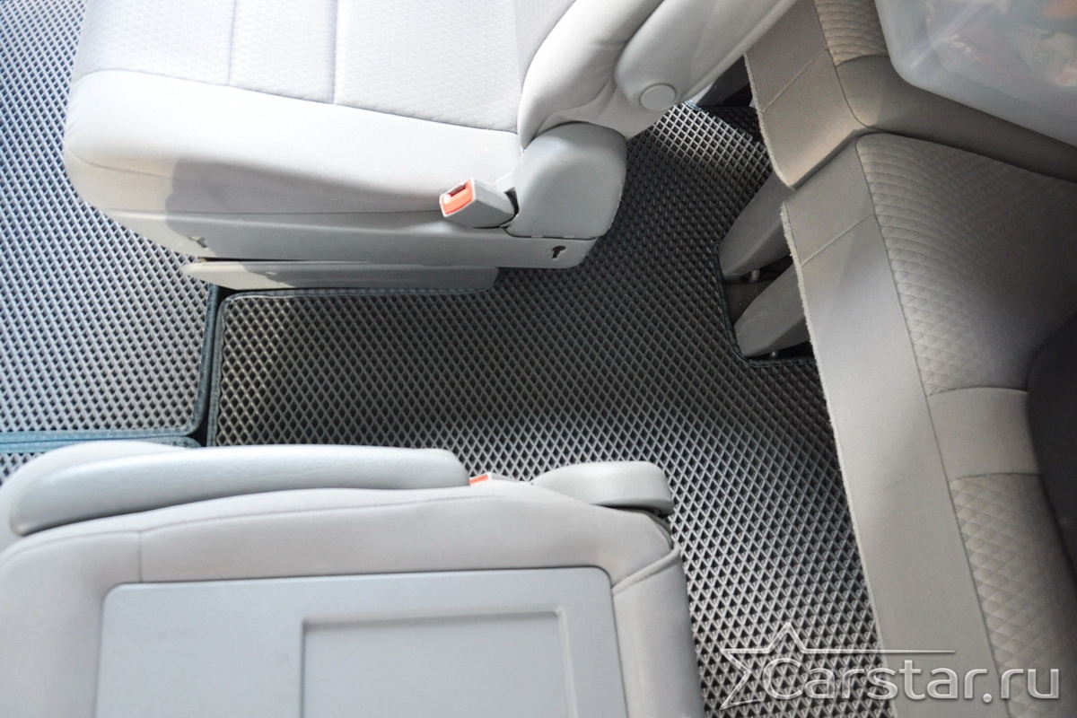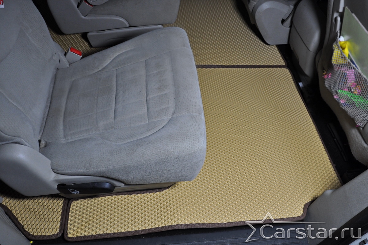 Автомобильные коврики EVA Dodge Grand Caravan V (2007-2020) 2 ряд: кресла 2+1 без прохода – это долговечные, удобные и универсальные аксессуары, которые помогут надежно защитить салон и багажник вашего авто от пыли, грязи и влаги в любое время года.