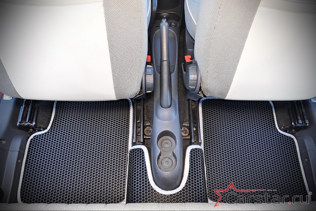 Толщина ковриков EVA составляет 10-12 мм. Глубина ячеек 7-8 мм. Такая толщина ковриков позволяет им служить довольно долго, не протираясь до 3 лет. А благодаря такой глубине ячеек коврик EVA площадью 1 кв.м. способен захватить около 3,5 л жидкости, сохраняя в чистоте вашу обувь и обивку салона.