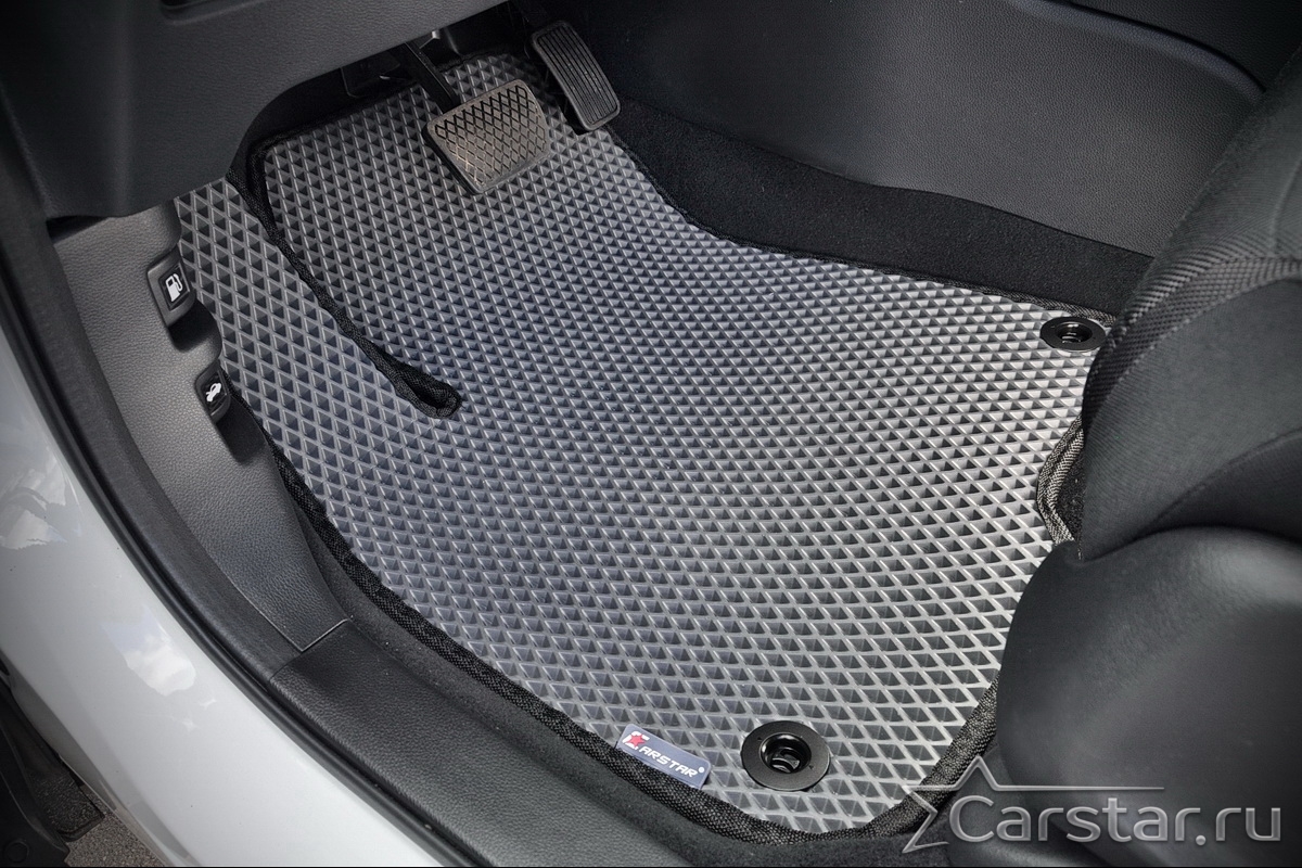 Коврики EVA надёжно крепятся с помощью оригинальных систем фиксации. Благодаря клипсам и липучке коврики защищены от смещений, что обеспечивает комфорт и безопасность вождения. Максимальное удобство также достигается точными, улучшенными лекалами для каждого автомобиля.