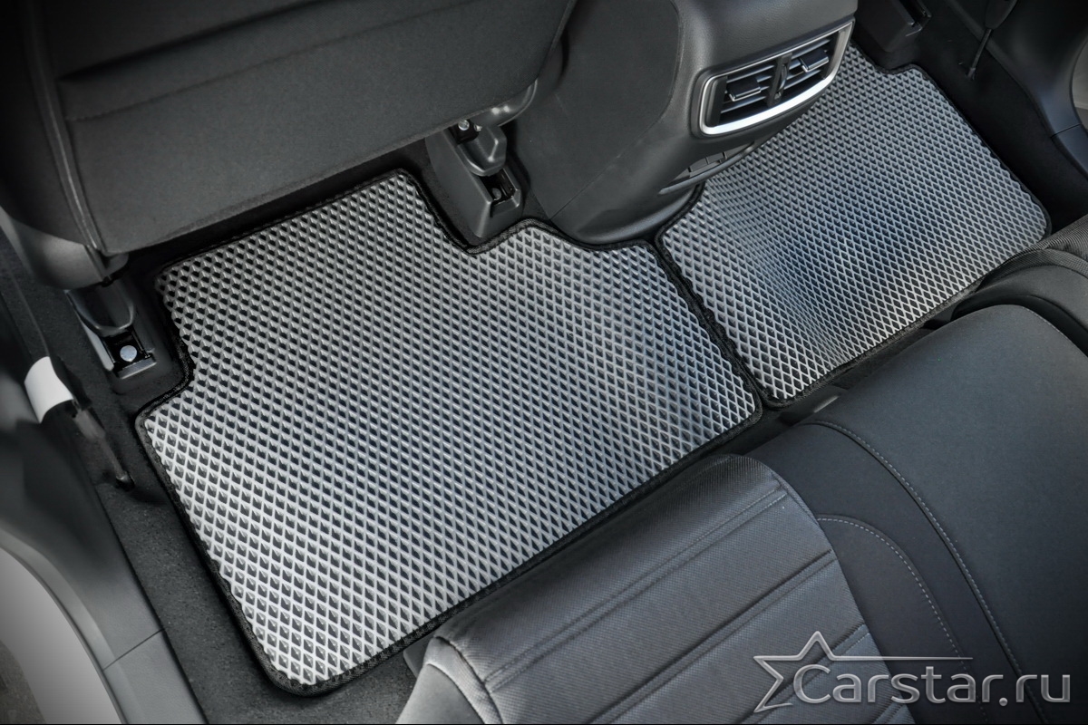 Толщина ковриков EVA составляет 10-12 мм. Глубина ячеек 7-8 мм. Такая толщина ковриков позволяет им служить довольно долго, не протираясь до 3 лет. А благодаря такой глубине ячеек коврик EVA площадью 1 кв.м. способен захватить около 3,5 л жидкости, сохраняя в чистоте вашу обувь и обивку салона.