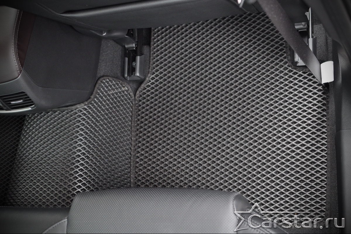 Толщина ковриков EVA составляет 10-12 мм. Глубина ячеек 7-8 мм. Такая толщина ковриков позволяет им служить довольно долго, не протираясь до 3 лет. А благодаря такой глубине ячеек коврик EVA площадью 1 кв.м. способен захватить около 3,5 л жидкости, сохраняя в чистоте вашу обувь и обивку салона.
