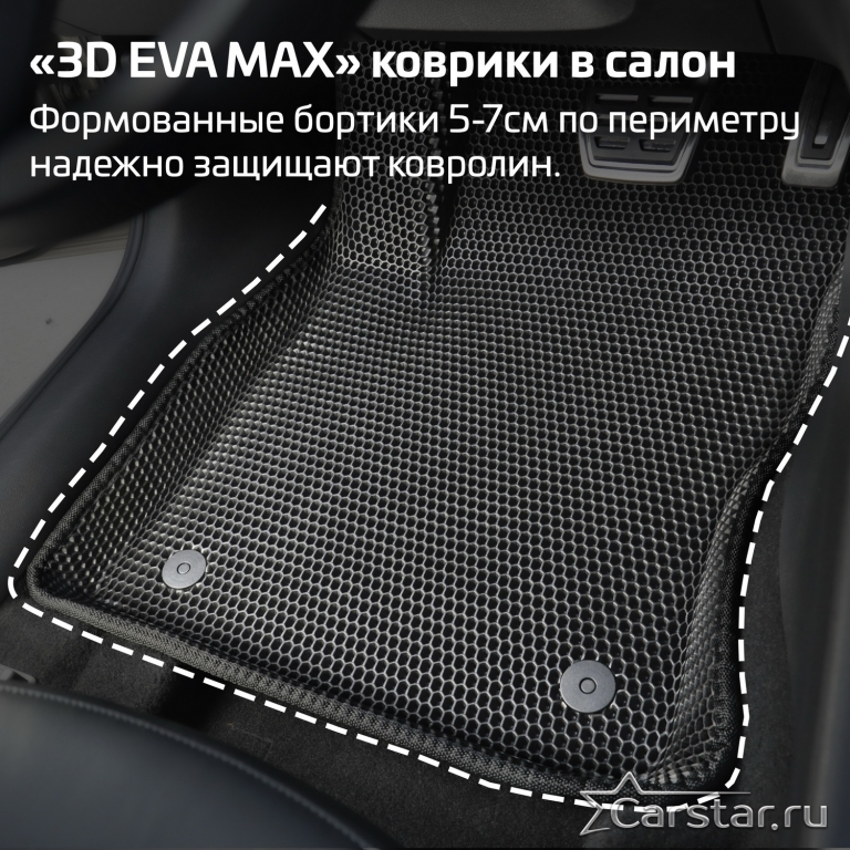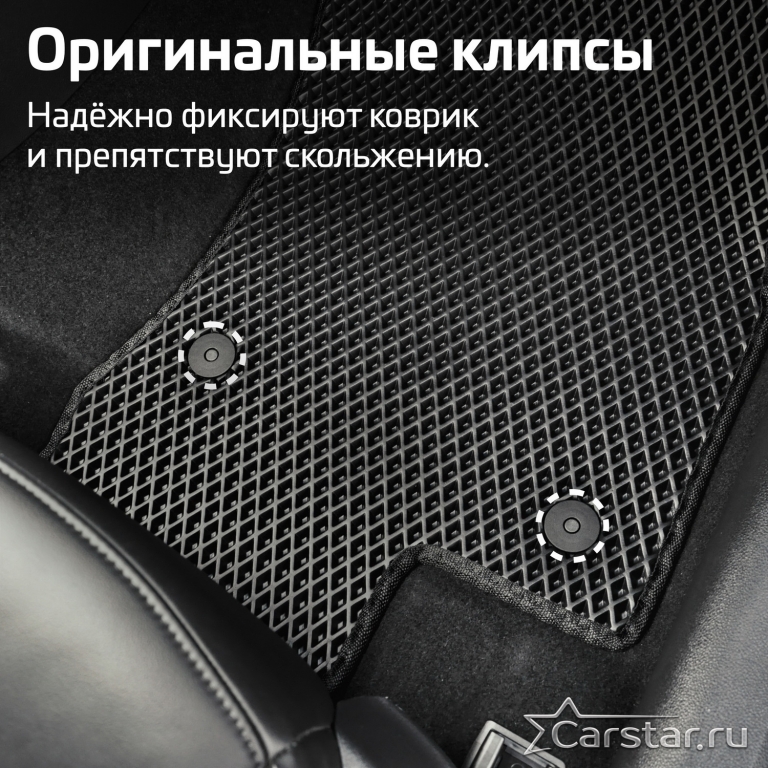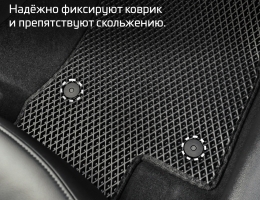 Коврики EVA надёжно крепятся с помощью оригинальных систем фиксации. Благодаря клипсам и липучке коврики защищены от смещений, что обеспечивает комфорт и безопасность вождения. Максимальное удобство также достигается точными, улучшенными лекалами для каждого автомобиля.