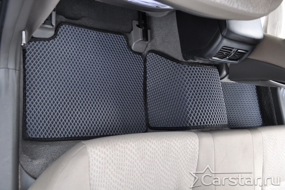 Толщина ковриков EVA составляет 10-12 мм. Глубина ячеек 7-8 мм. Такая толщина ковриков позволяет им служить довольно долго, не протираясь до 3 лет. А благодаря такой глубине ячеек коврик EVA площадью 1 кв.м. способен захватить около 3,5 л жидкости, сохраняя в чистоте вашу обувь и обивку салона.