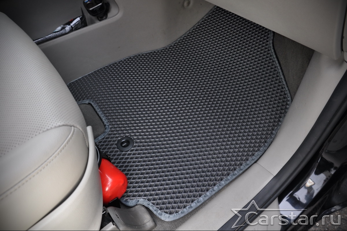 Текстильные коврики надёжно крепятся с помощью оригинальных систем фиксации. Обратная сторона имеет противоскользящее покрытие, что обеспечивает защиту от смещений и безопасность. Максимальное удобство достигается точными лекалами.