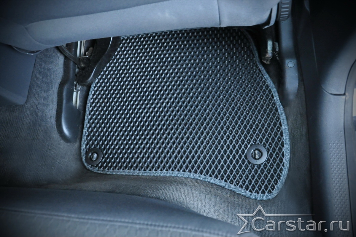 Текстильные коврики надёжно крепятся с помощью оригинальных систем фиксации. Обратная сторона имеет противоскользящее покрытие, что обеспечивает защиту от смещений и безопасность. Максимальное удобство достигается точными лекалами.